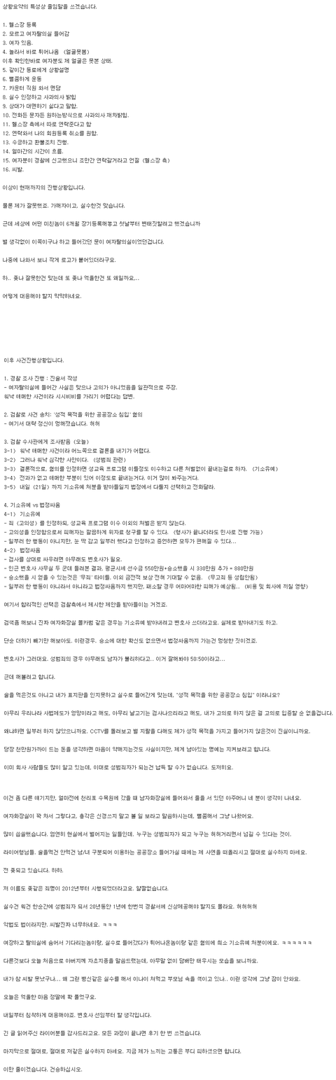 후기 보면 무죄판결받음 검사가 압박할때는 죄 인정하면 기소유예 받을수있다고 꼬드기고 안그러면 문제 커진다고 겁줬는데 변호사 오니깐 그냥 무죄 변호사 수임료 더럽게 비쌋다 나쁜년아 가 대략 후기 요약임