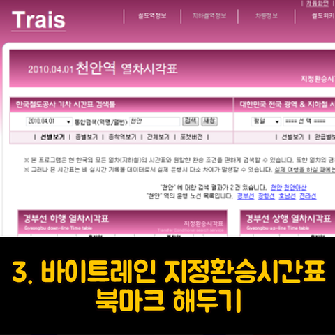 바이트레인 지정환승시각표 : http://www.trais.org/05-css