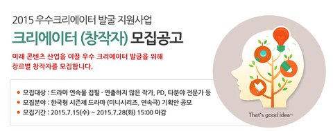 2015년 우수 크리에이터 발굴 지원사업에서 크리에이터(창작자)를 모집합니다.