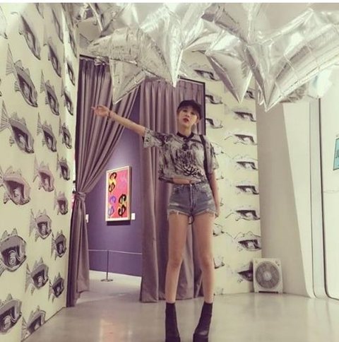 서인영이 앤디워홀 전시회에서 찍은 사진 인스타그램에 올린건데 크롭탑티셔츠 눈에 확 들어왔음!