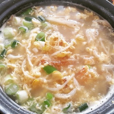 북어 불려서 들기름에 달달 볶다가 북어불린물을 육수로 넣어주고 콩나물 넣고 파송송 계란탁~!