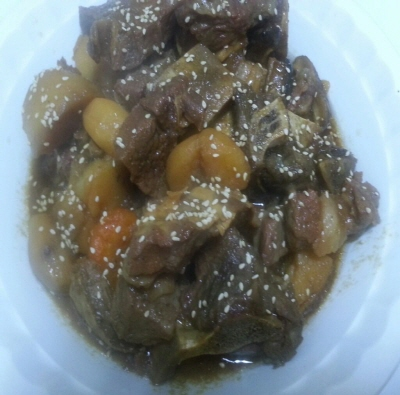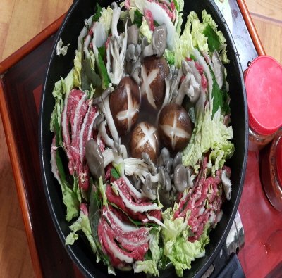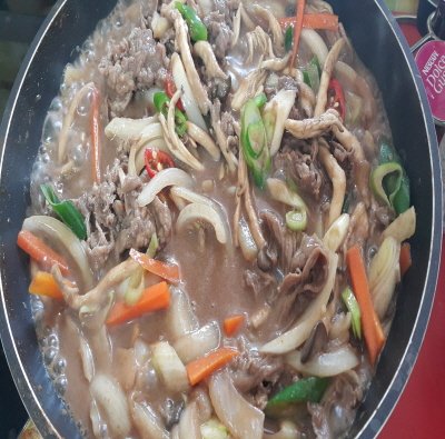 버섯불고기 : 핏물 빼고 조리하니 색깔이 돼지고기 같네요. 소고기 맞습니다!