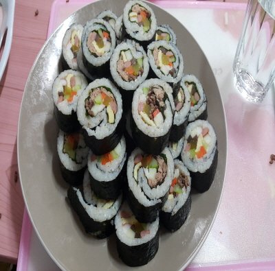 김밥 먹고 싶은날에는 마트 가서 장봐다가 바로 싸서 먹어요. 먹는거에 대한 열정과 추진력은 알아준답니다. 마트에 김밥용 치즈라고 김밥용 단무지처럼 생긴게 있어서 사왔지요.고소하고 쫀득하니 너무 맛있더라구요. 앞으론 무조건 꼭 집에서 김밥 쌀땐 넣어야 겠어요.