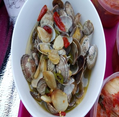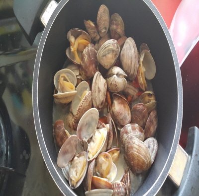 요고 요고 술안주로 아주 기똥 차요.편채 마늘 볶다가 조개 넣고 볶다가 버터 조금 넣고 페퍼론치노 넣고 청하 한병 붓고 조개 입 벌리면 끝. 따로 간 할 필요도 없이 간도 맞고 맛도 있고요. 술을 부르는 안주!
