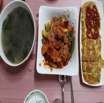 조촐한 밥상입니다. 초딩입맛인 신랑에겐 스팸구이를..
