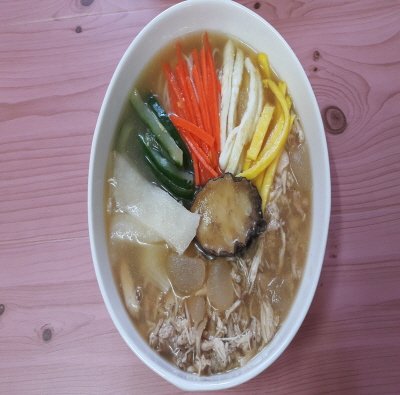 닭한마리 사다 푹 고와서 속까지 시원한 초계탕을 만들었어요.살도 발라내야 하고 기름도 걷어내야하고 육수 얼려서 살얼음 만들고 전복도 넣고 지단부치고 고명올리고 손이 정말 많이 가는 음식이지만 음식은 정성이란 말이 괜한말은 아닌거 같아요.