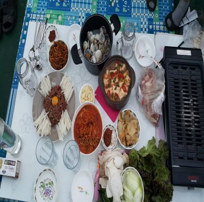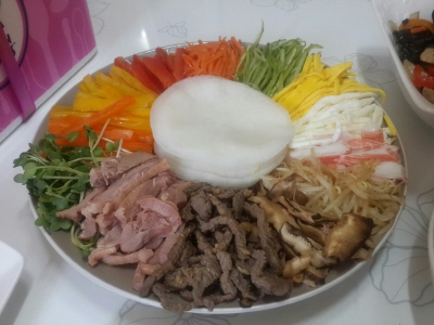 전날 야채 다듬어 놓고 아침 7시에 일어나서 점심때까지 주방에서 살았어요 ㅠ덥고 허리아프고 ㅋㅋㅋ 하다가 내가 이짓을 왜 시작했을까 후회도 했지만..신랑 행복해하는 모습 보고 정말 하길 잘했다 생각 들었지요.신랑이 이곳 사람이 아니고 지방에서 올라와서 아는 지인들이 별로 없거든요.