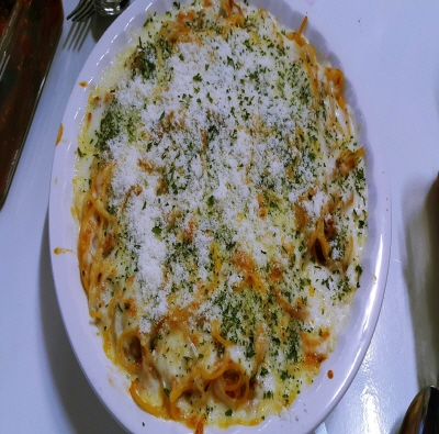 스파게티는 팬에서 조리한다음에 위에 모짜렐라 치즈만 뿌려서 오븐에 돌려요.가끔 이렇게 느끼한게 땡낄때가 있더라구요.