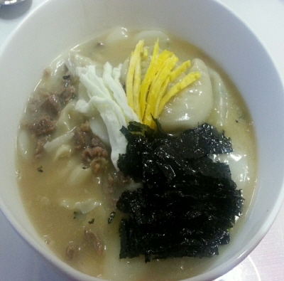 진한 사골육수에 김가루 팍팍 ! ㅋㅋ저는 떡을 더 좋아하고 신랑은 만두를 더 좋아해요~