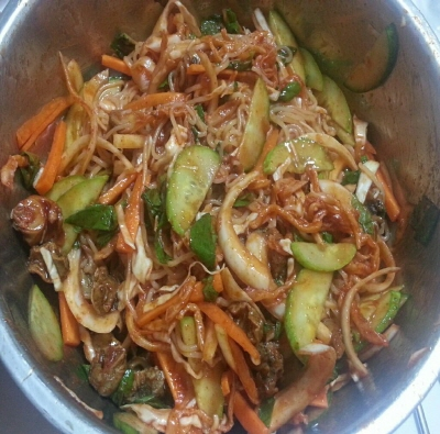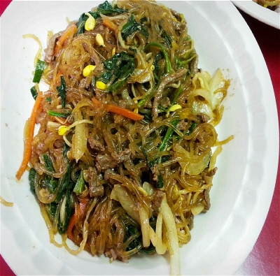 먹다남긴 잡채에 굴소스만 조금 더넣고 볶아서 잡채덮밥으로 변신~