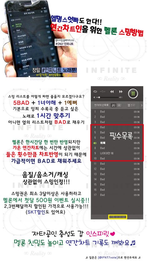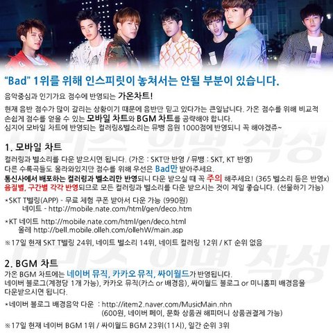 ♡♡인피스핏♡♡ 앞으로도 계속 ★스밍★ ♥투표♥ 부탁해~그리고 아직 ★★BAD 음원★★ 안 받은 인슾들은 꼭 가온차트 반영을 위해서 음원 사이트에서 다운 받자. 멜-론은 아뒤 여러개 생성해서 각자 받을수도 있고. ※※주의할 것은 다운 받은 음원으로 스밍은 절대 노노!! (그건 반영되지 않는다규 ㅠㅠ) ※※ 꼭 받고 나서 지우던지 아니면 다른 폴더로 옮겨죠!!!! 음원스밍은 스트리밍 이용권으로 하는거야 ^^ 아래 음원스밍 짤들 참고!