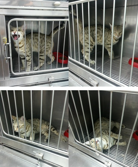 유기묘 들어왔다는 소식에 퇴근길에 병원에 가보니 케이즈에 갇혀서 꺼내달라고 울고 있었어요