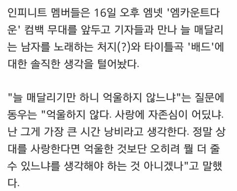 말 참이쁘게 한다ㅜㅜ 역시 장동우 bb 비록 인피니트가 저렇게 말했지만 꼭 1등시켜줍시다!! 다들 열심히 스밍돌려주시고 안무영상도 볼 수 있도록 뮤비도 많이 봐주세요 ♥