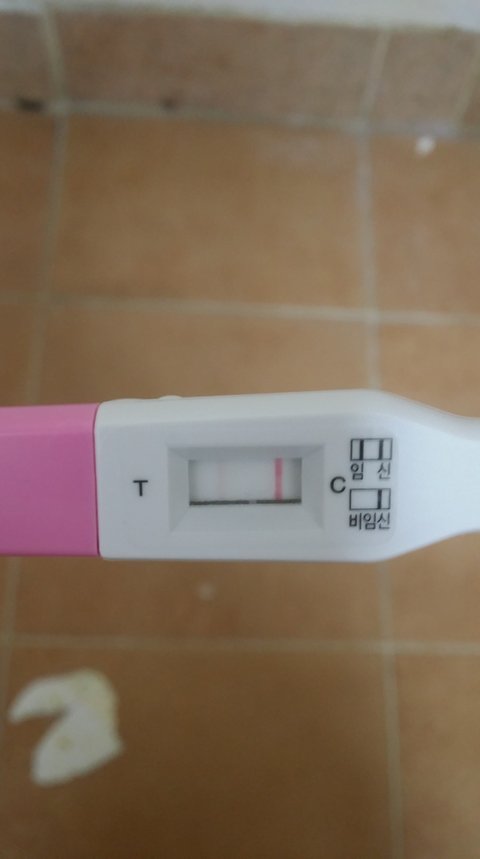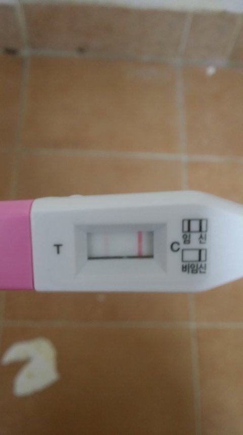이번달 생리기간 일주일이 넘어서 방금 검사했는데 이렇게 흐릿하게 두줄이 보이네요.