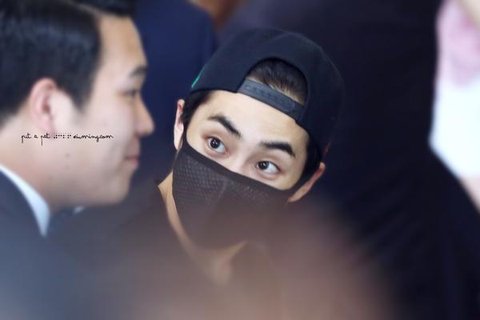 경호원분께 눈크기 자랑중인 시우민 ㅋㅋ