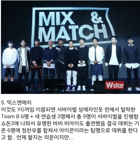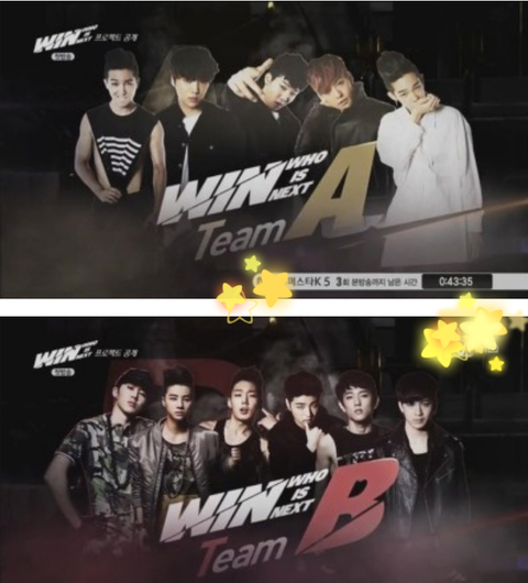 이 프로그램은 멤버를 하나하나 뽑는게 아니라 Team A 와 Team B로 나눠서 이기는팀이 데뷔하는 방식이라 신선했음 결국은 Team A가 이겨서 위너로 데뷔함.
