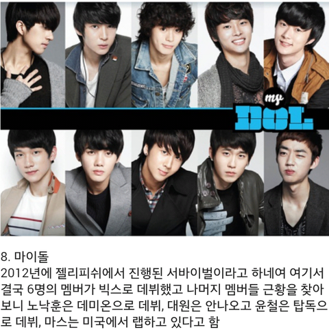 기획사 입장에서는 데뷔 전에 얼굴도 알리고 인지도도 쌓는 좋은 기회겠지만 시청자 입장에서는 재밌기도 하면서 참 안타깝고 잔인한 프로그램들인거 같음
