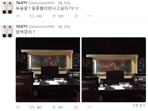 신곡녹음완료라뇨?라며 자기들이 원하는 타이틀곡 의견 안들어준다며 피코하던 테이스티ㅋㅋㅋ 거짓말 들통함