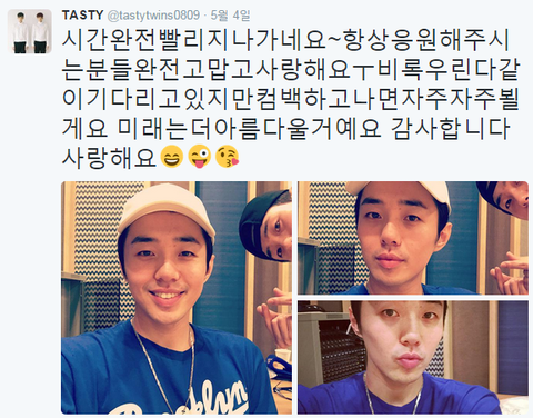 -----테이스티가 공식웨이보에 한국활동중단한다는 글을 일방적으로 올림---- 잠적기사나고 일방적통보라고 신곡녹음도했다고 울림기사남------- 신고녹음완료라뇨? 잠적이라뇨? 이러면서 테이스티가 트위터에 글을올림-------그래도 연락기다리겠다고 함 울림이