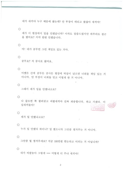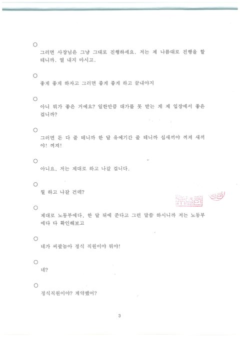 현장에서 이 문제에 관해 그만두기 직전 발주처와 원청사 직원들에게도 상의를 했고, 모두 도울일이 있으면 얘기하면 어떻게든 도와주겠다고까지 얘기를 할 정도로 부당하다는걸 누구나 다 알고있는데 회사대표는 끝까지 본인의 잘못을 인정하지는 않는듯합니다.