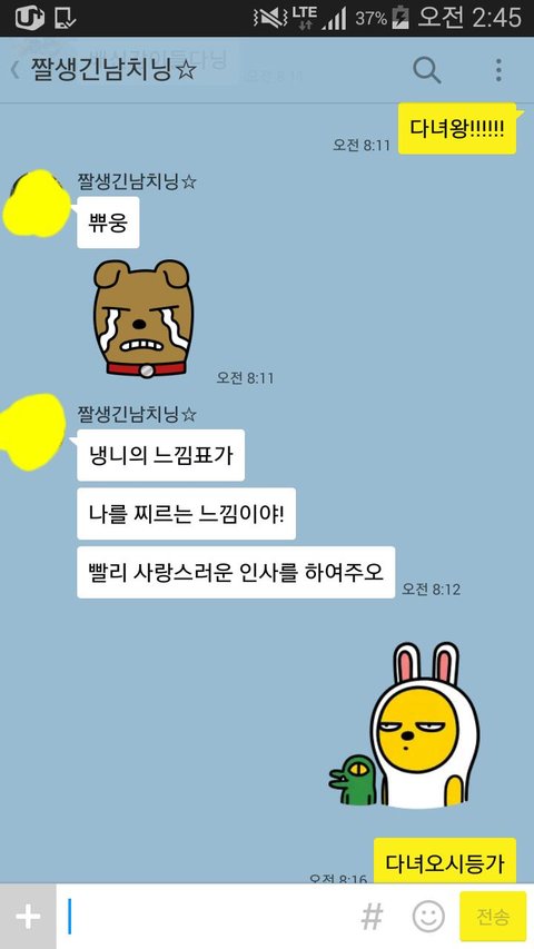 이때 제가 뭐 화가 나서 화내다가 그냥 다녀와!!!!!!! 이랬더니 저렇겤ㅋㅋㅋㅋ