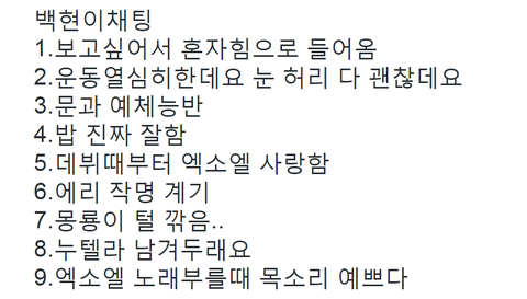 백현 채팅내용 약간