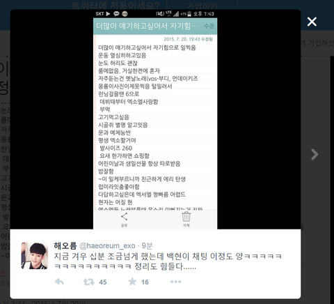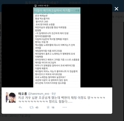 백현이 채팅 10분했는데 이정도래