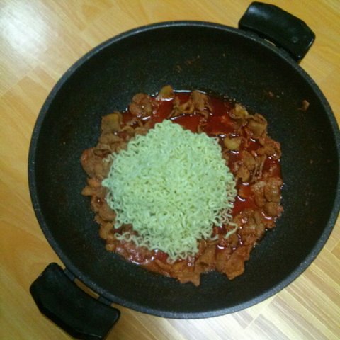 제육 볶음 할때 청양고추 사기는 아깝고 해서 불닭볶음면 사서 매운 맛을 내고 면이 아까워서 사리로 추가 시킴 은근히 맛있었어요 !!!