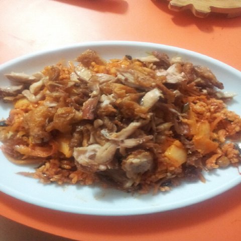 마지막으로 고기먹은 다음 볶음밥이라고, 치킨 먹다가 남아서 김치 볶음밥 위에 토핑 해서 먹음