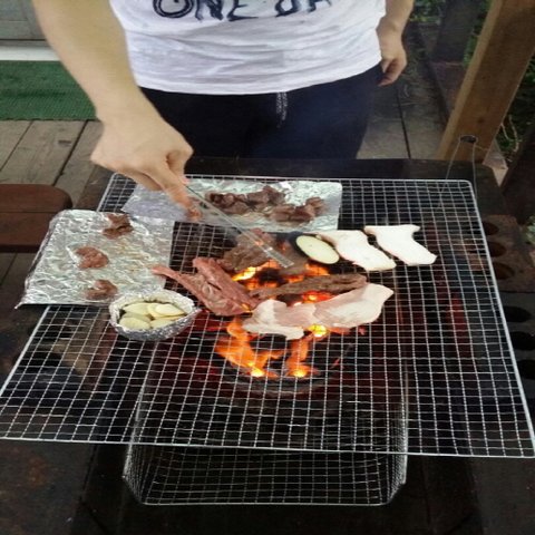 친구들과의 여행 에서 먹은 고기들 !!!( 저희집에서 가져온 막창 갈비살 항정살 입니다. 비쥬얼이 확실히 떨어 지네요 ㅠ.ㅠ)