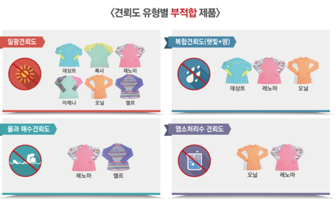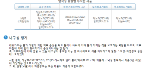 일광 햇빛 땀 복합 견뢰도에서 부적함을 볼 수 있었어요.