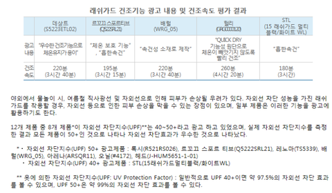 또 자외선 차단 지수 측정 결과