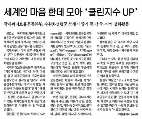 국제위러브유운동본부 클린월드운동에 참여해 보는건 어떨까요?