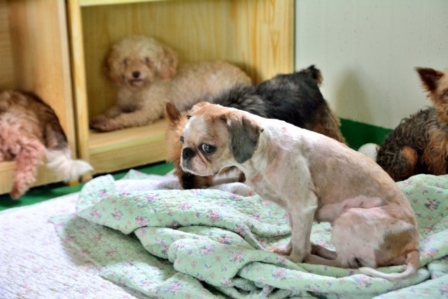 ↑ 번식장에서 고단하게 살아온 늙고 병들어 버린 몸으로 축 쳐저 버린 아이들.
