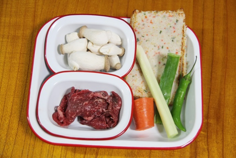 재료는 삼진 어묵, 한우 불고깃감, 새송이버섯, 당근, 대파, 청양고추, 진간장, 미림, 배즙 설탕