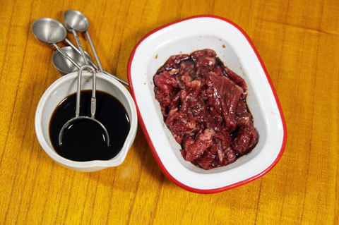 한우 불고깃감은 먹기 좋게 썬 뒤 양념을 모두 섞어 재워줍니다!