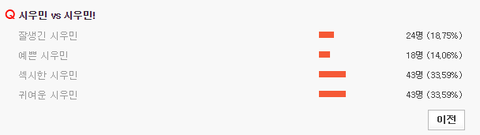 좀전에 결과 보니깐 섹시 큐티 동점이다! 역시 민석이하면 큐티섹시죠~ ㅋㅋ