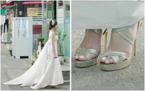 지난 번 과감한 튜브톱 드레스에 지미추 웨딩슈즈로