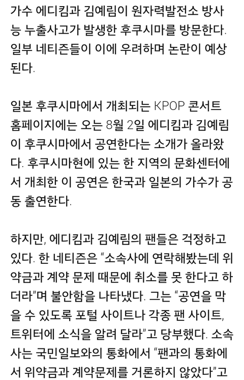 저희 팬들은 예림이랑 에디 절대로 후쿠시마 못 가게 막을 생각입니다