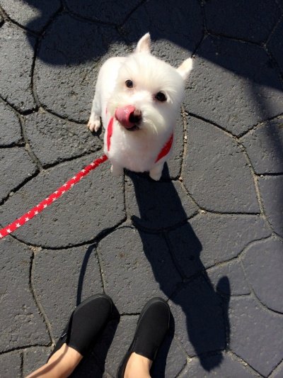 힘들게 목줄 매고 저랑 같이 산책갔을때 랍니다. 이렇게 코낼름을 잘해요.