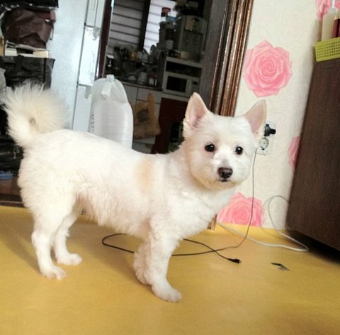 특징 : 미용한지가 좀 되서 털이 덥수룩 합니다.