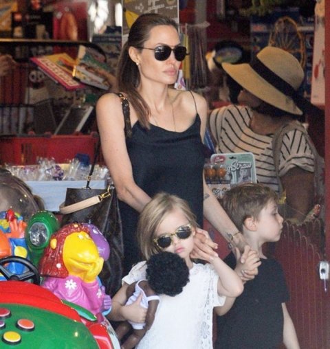 양 손으로 아이들 손 잡고 살뜰하게 챙기는 졸리 엄마~