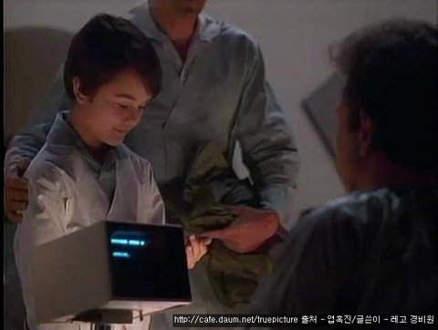 그는 작은 모니터를 손에 쥔 (좀 두껍긴 해도 지금의 태블릿 PC 느낌이네...!