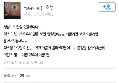 참 이렇게 보면 엑소나 엑소엘 서로 챙겨주기 바쁜 듯...
