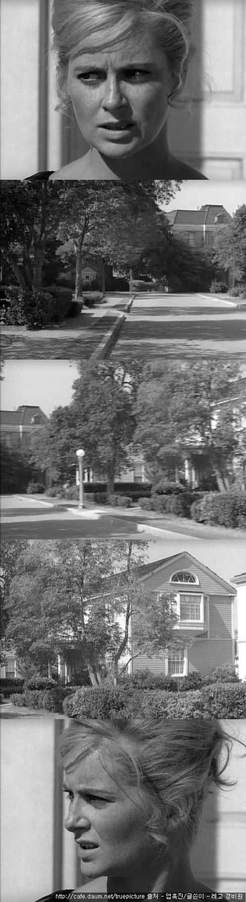 누구든 찾아오길 바라며 밖으로 나가 살펴보는 여자...