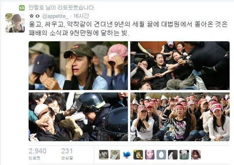 ‘그냥 좀 더 시간이 필요한가 보다’라며 애써 좋은 쪽으로 생각하자고 카카오톡 단체창에서 동료들을 다독이고 있을 때, 최 변호사가 휴대전화로 “졌습니다”라고 알려줬다. 다리에 힘이 쫙 풀렸다. 지난 10년간 버텨온 긴 싸움의 정당성이 단 몇 초 만에 무너졌다고 느꼈다. 허망하고 분했다.