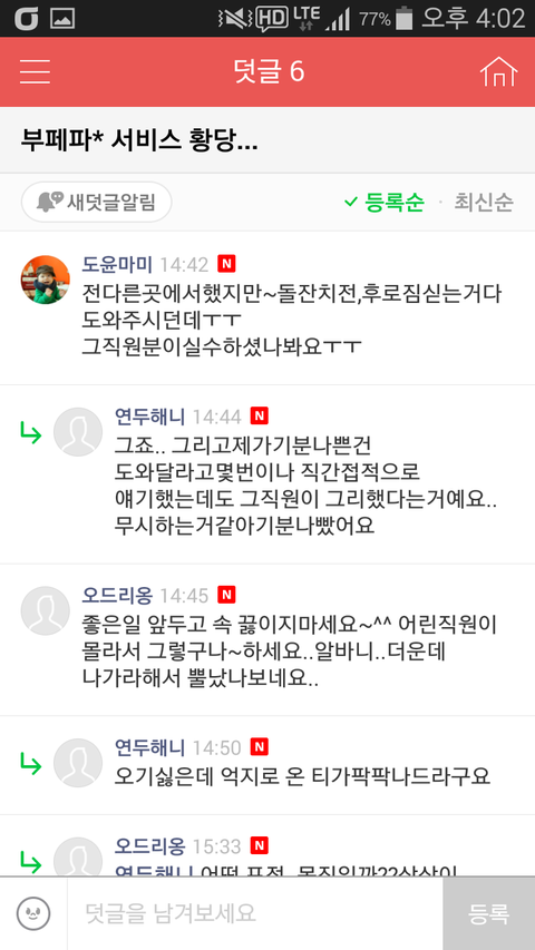 뭐 저까지는 오해가 있었겠구나,서비스업이니 당연한거구나 하죠 우리도 그런데 댓글을 보는순간...