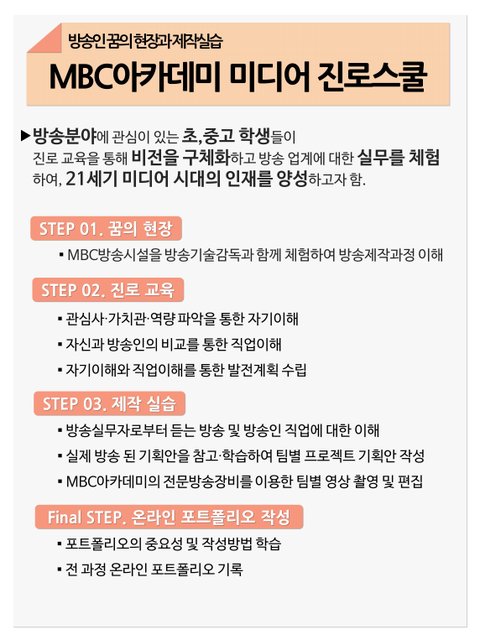 이번에 초 6학년 아이 MBC아카데미 미디어진로스쿨 보내기로 했거든요.