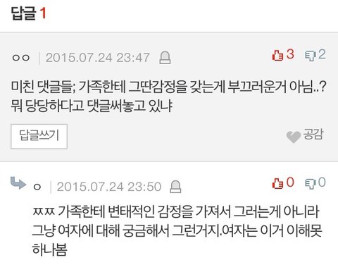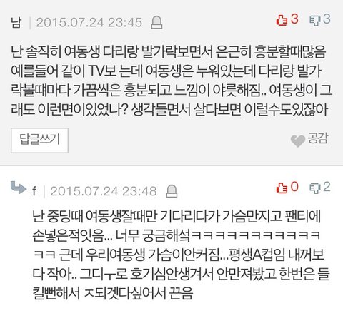 웃긴건 저러는게 남자들 본능이라 어쩔수 없다면서 뭘 잘못했는지도 모르고 조카 당당하다는거ㅋㅋㅋㅋㅋㅋ