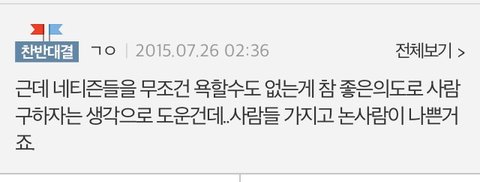 그리고 하나 씩 꼭 저렇게 도와준 네티즌들이 무슨 죄냐 그 사람들을 욕하는 것은 무엇이냐 라는 반응이 꼭 있음.
